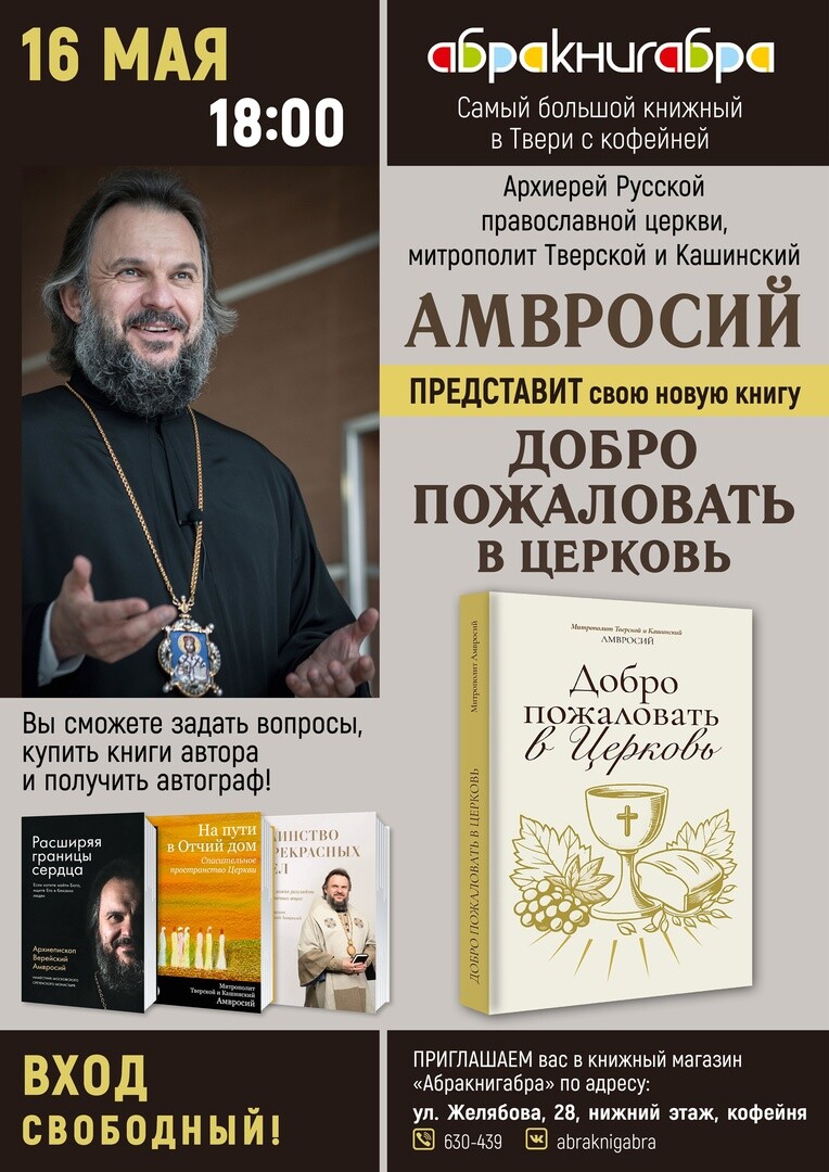 В Твери новую книгу митрополита Амвросия можно приобрести в церковном магазине «Талант» и на епархиальном складе Тверской епархии (склад и магазин находятся по адресу: г. Тверь, ул. Советская, 10).